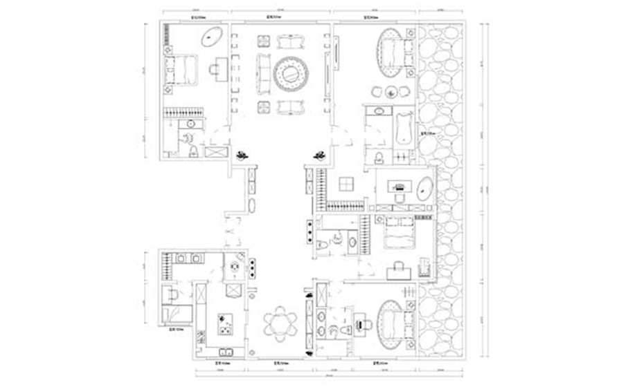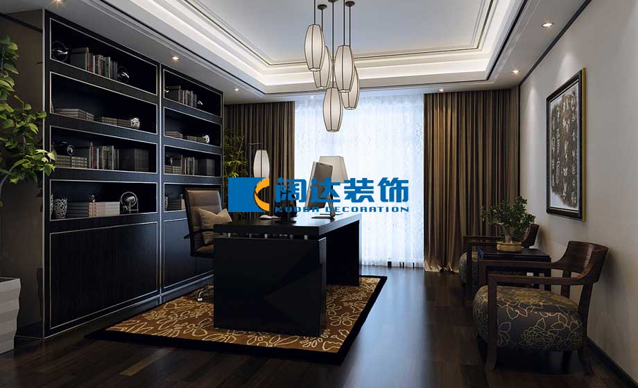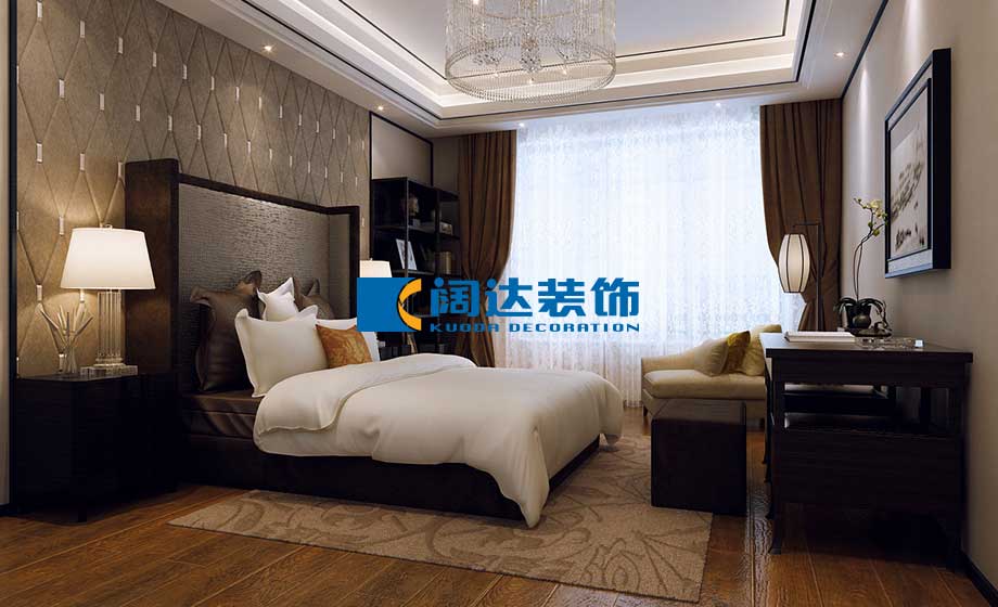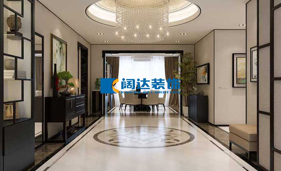 本案運用新中式風格,典雅高貴的特制詮釋出中國文化的神韻,客廳是整個案例的點睛之筆、淡黃的內置燈帶、做舊處理的地板、線條清晰、層次分明的吊頂、極強的空間對稱感;餐廳的設計圍繞著本風格的特質所展開,在用材上充分體現了風格特點,墻面淳樸但質感極強的真石漆,頂面醇厚的木梁造型頂,地面英朗又層次分明的拼貼處理,有中式的傳統格調又有新時代物質的點綴。