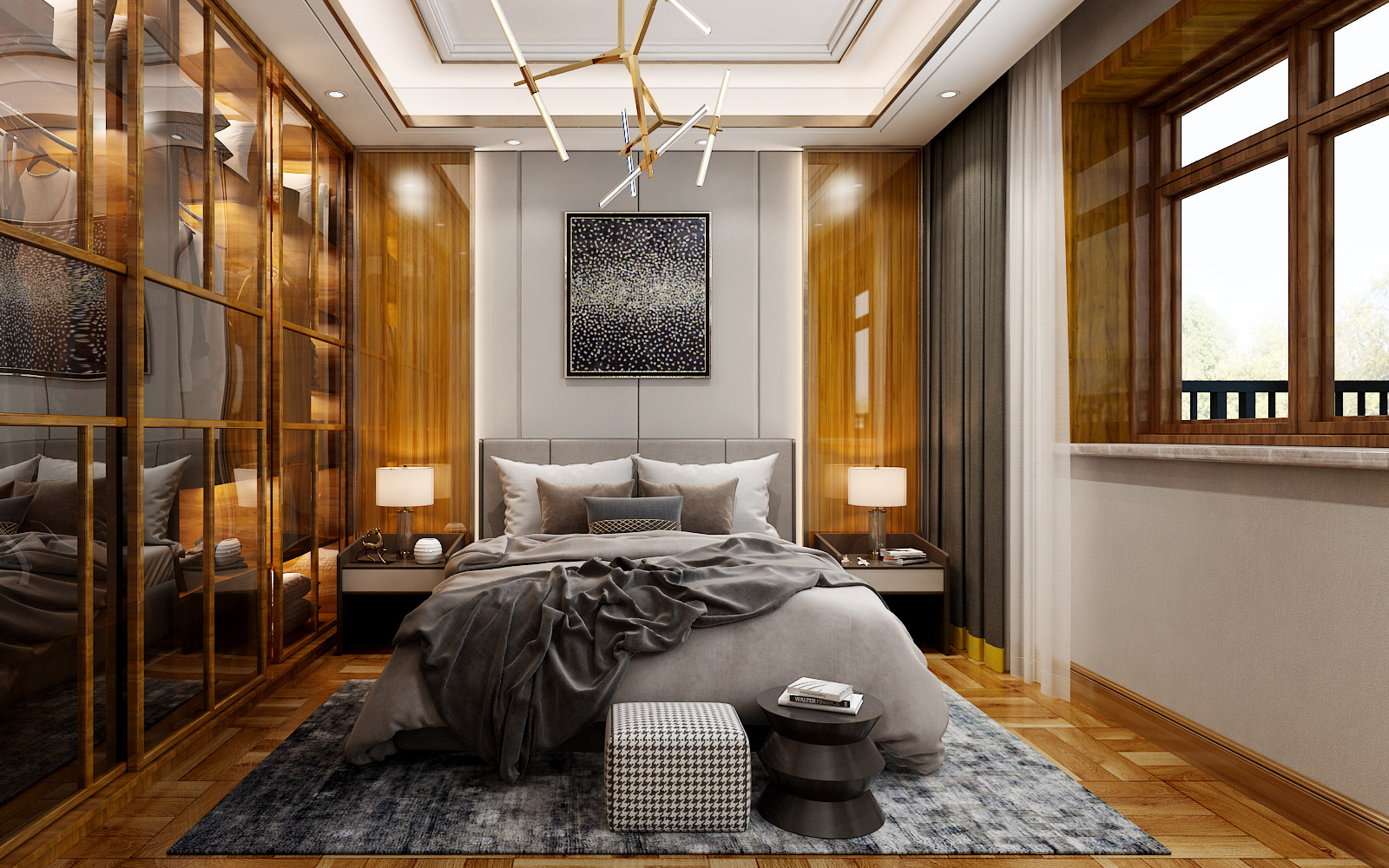 本案的別墅設(shè)計采用了新中式的裝飾風(fēng)格,公共區(qū)域是以實木色調(diào)的家具和具有中國特色元素的裝飾來打造,有一種悠遠(yuǎn)、寧靜的文化韻味。二三層私密空間主要是以現(xiàn)代輕奢的風(fēng)格,簡約的線條結(jié)合色彩更為突出了整個空間的靈動性。同風(fēng)格案例:更多>>
