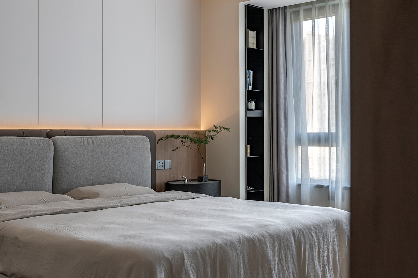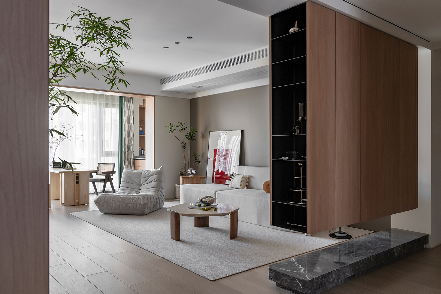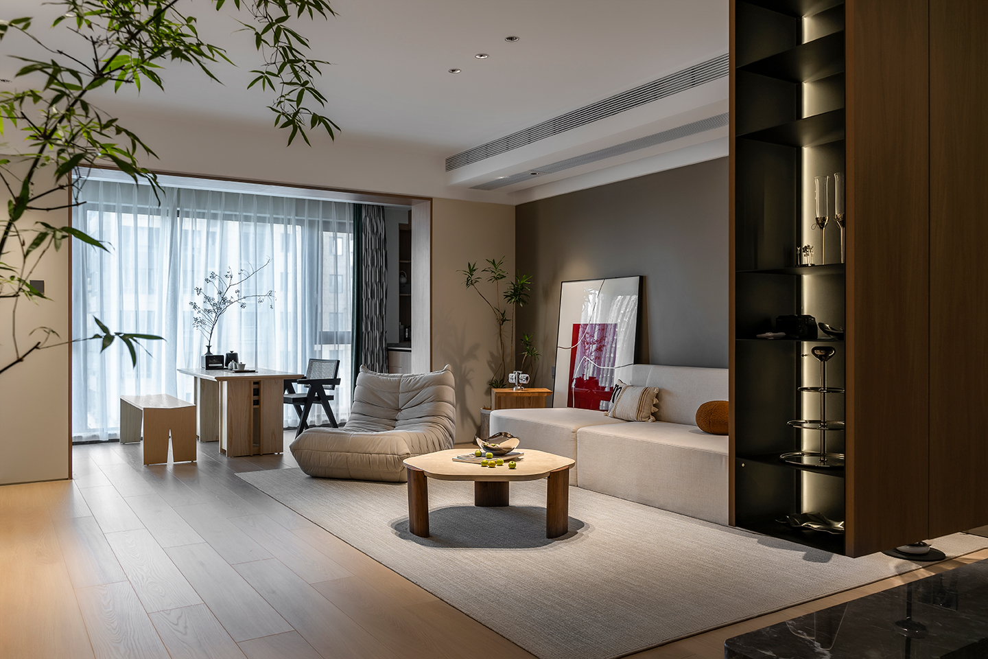 整體硬裝木飾面材質統一,在軟裝上配合時尚的家具單品,體現悠然自得的生活境界,從而達到業主最初向往的世外桃源。